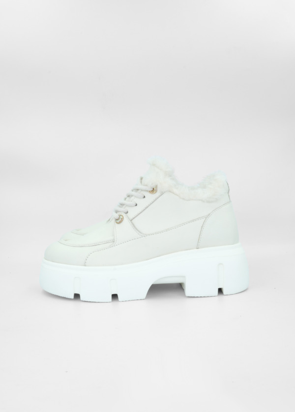 Kırık Beyaz Deri Kalın Tabanlı İçi Kürklü Bot
