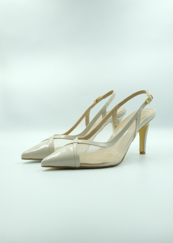 Bej Fileli Topuklu Ayakkabı